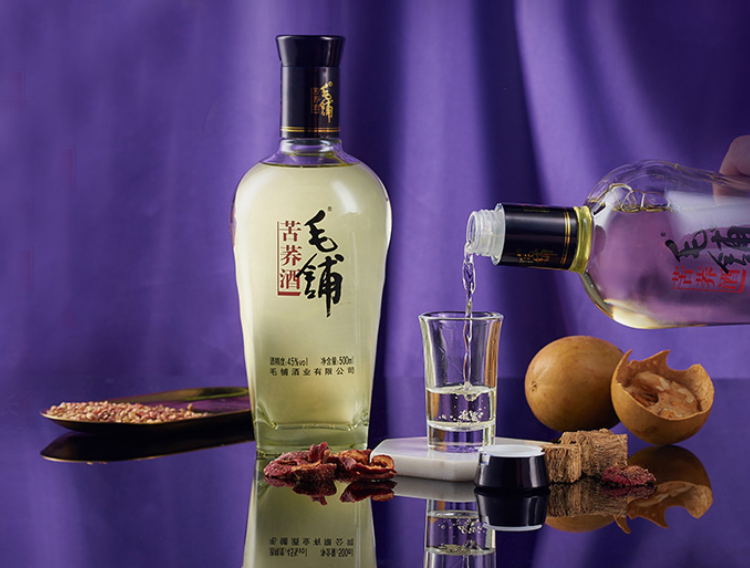 毛铺苦荞酒,采用传统酿造工艺与中药提取技术相结合,使用清香型、浓香型和酱香型白酒,且融入具有药食两用的苦荞麦、葛根、枸杞等中药材。